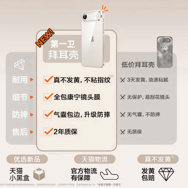 [防摔拜耳]第一卫适用苹果17ProMax手机壳新款iPhone16透明保护套15硅胶14散热13镜头全包12plus女男ip高级感