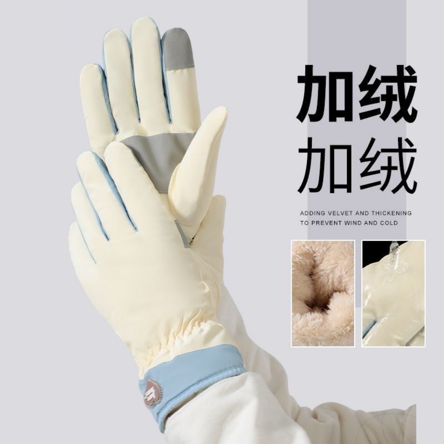 2025新款可爱手套女冬季加绒加厚保暖骑电动车防风防雨水防寒触屏