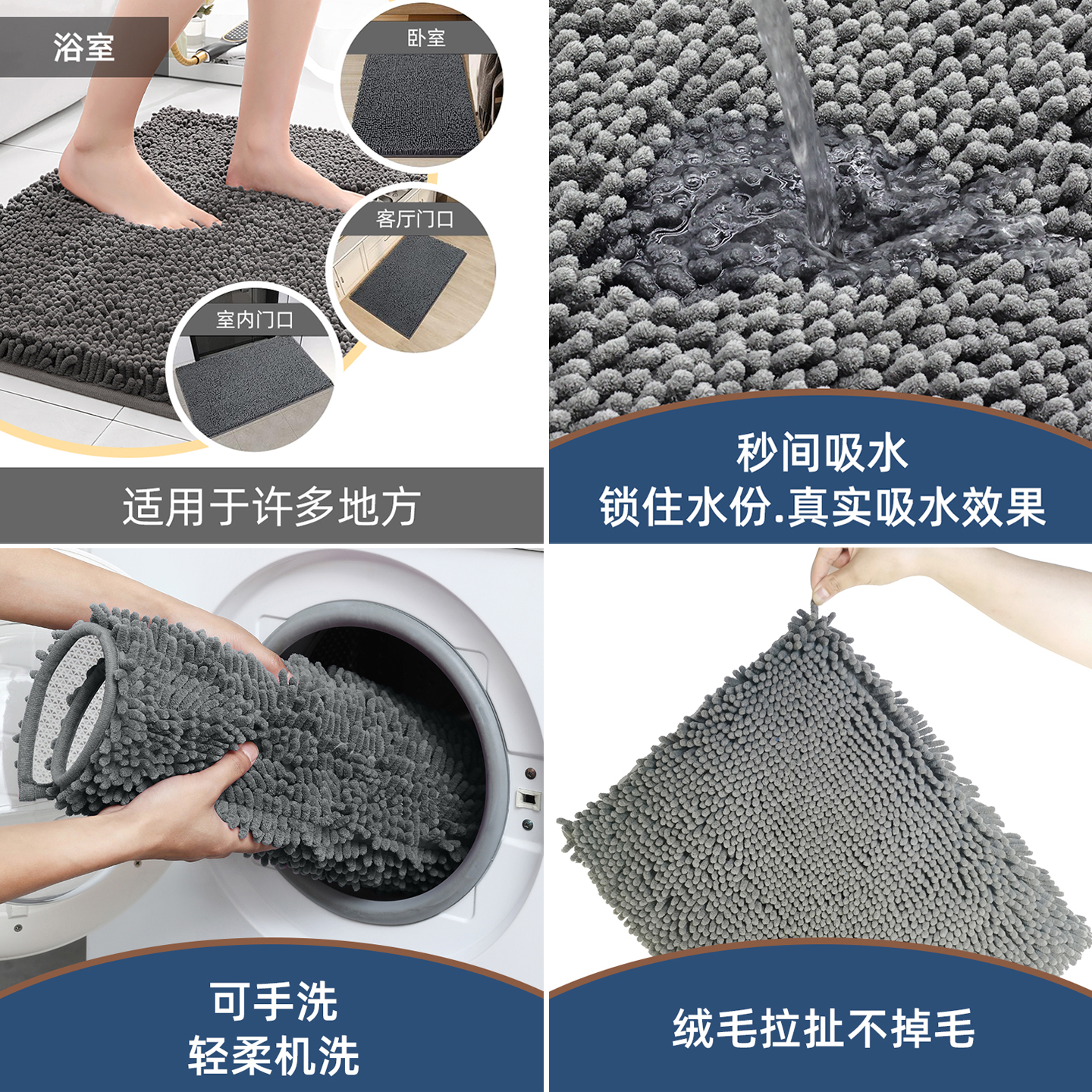 浴室雪尼尔地垫卫生间强吸水门口防滑脚垫耐脏地毯洗手间厕所门垫