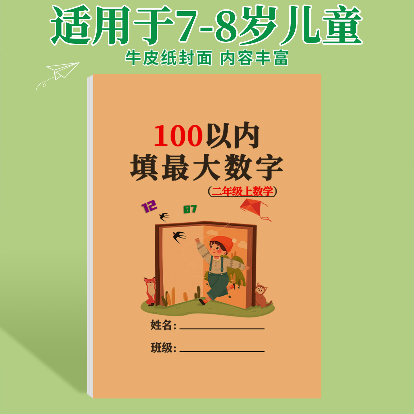 小学数学二年级上册100以内填最大数能填几练习本儿童口算题天天练作业本加减法计算练习册算数薄