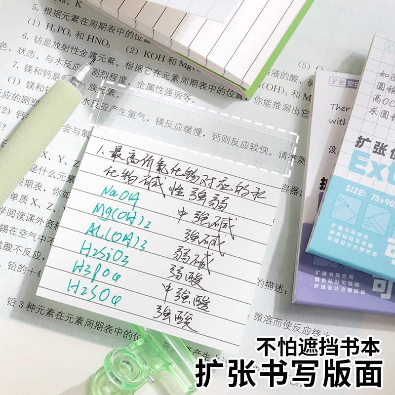 可视扩张便签本任意贴不遮挡可折叠可撕有粘性可粘贴高颜值便签贴纸透明高中笔记贴订正错题扩展横线珠光网格