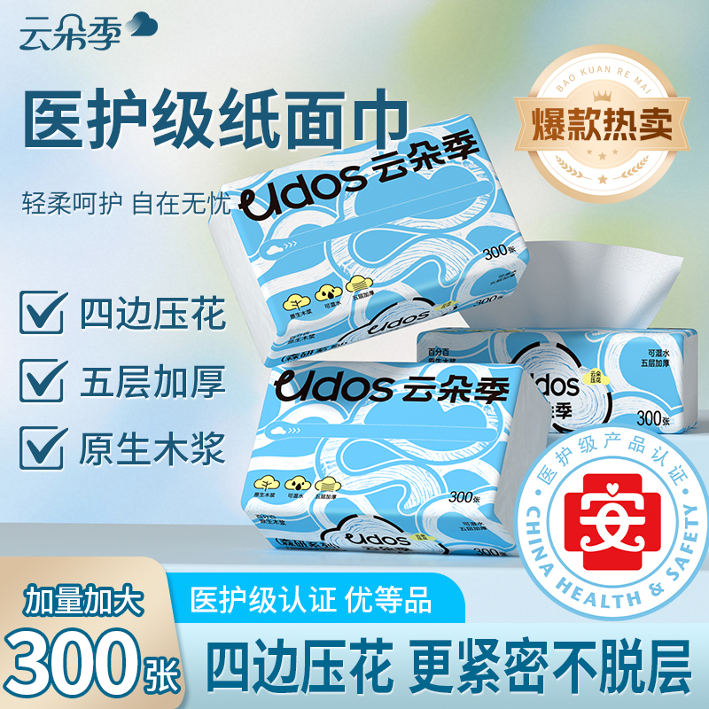云朵季医护级抽纸300张家用5层实惠装纸巾卫生纸巾学生宿舍面巾纸