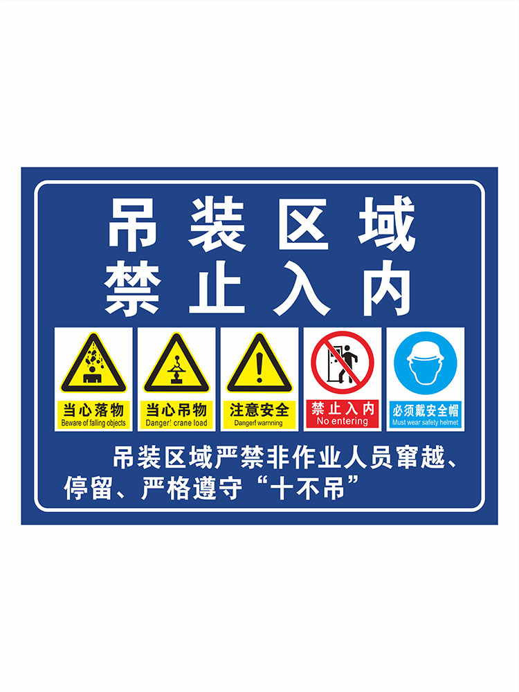 吊装区域警示牌起重吊装十不吊安全标识牌当心吊物标识小心吊物作业区域航吊警示标志注意吊车臂下严禁站人牌