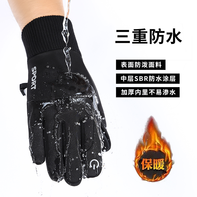 冬季保暖手套男防水加绒防风防寒骑行开车触屏露指玩手机全指分指
