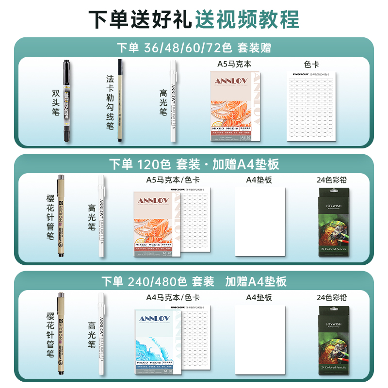 法卡勒马克笔三代软头 FINECOLOUR旗舰店官方专卖3代全套480色 酒精油性双头动漫设计48色60色72色120色套装