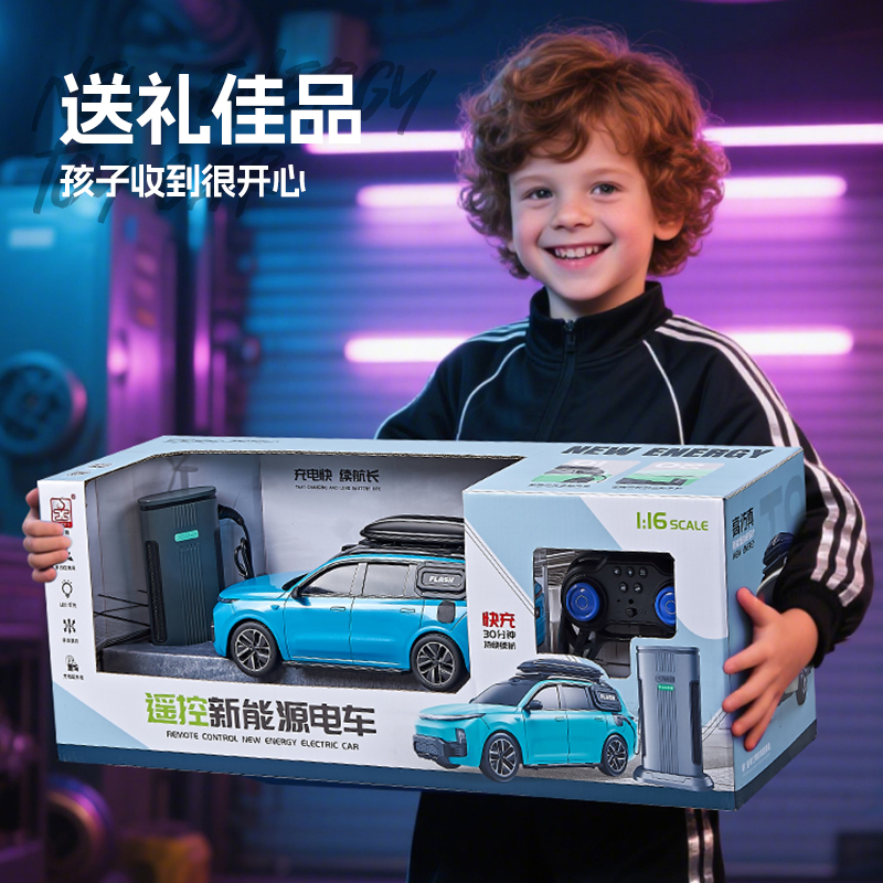 胜雄玩具2.4G遥控车新能源大号汽车玩具模拟场景充电桩灯光效果