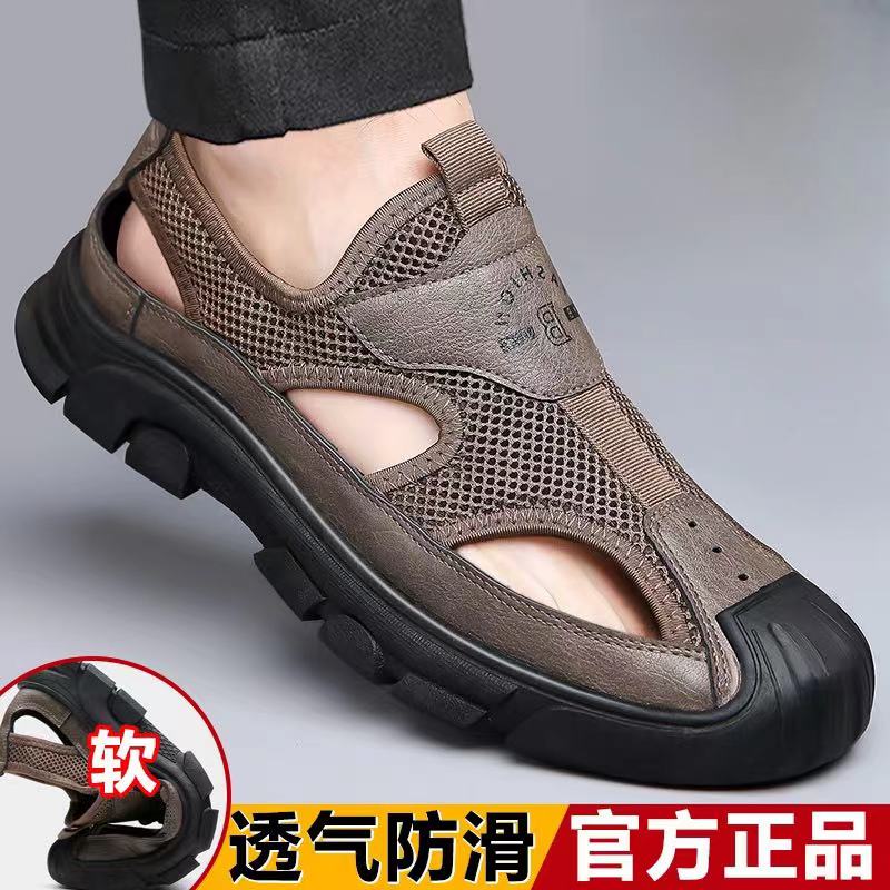 老人头凉鞋男2025夏季真皮男士休闲沙滩鞋软底防滑外穿两用凉拖鞋