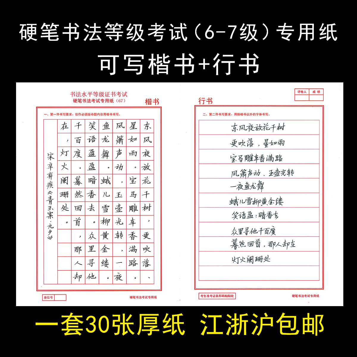 江苏书法考级硬笔6-7级楷书隶书范文字帖加考级专用纸方格横线格
