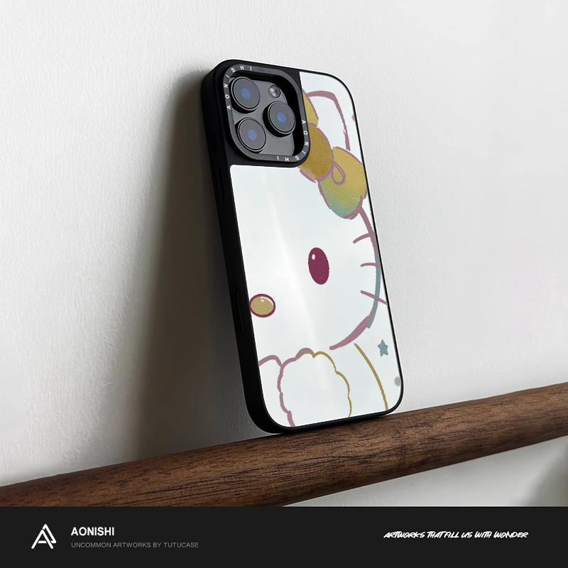 【涂绘凯蒂猫】原创苹果16手机壳iPhone15promax新款不会撞的镜子16Pro磁吸防摔15镜面14带补妆镜13pm女爆