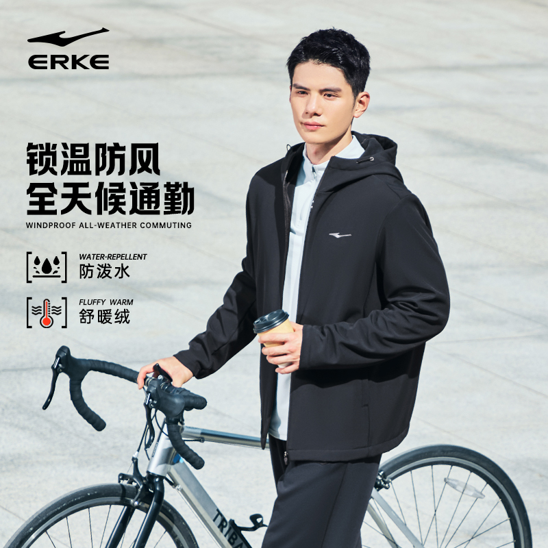 鸿星尔克于适外套男秋冬新款男士加绒冲锋防泼水夹克运动风衣男款
