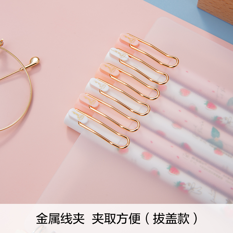 晨光按动中性笔卡斯波和丽莎草莓密语限定 中性笔0.5黑色水笔按动式碳素笔学生用刷题笔记手帐顺滑少女走珠笔