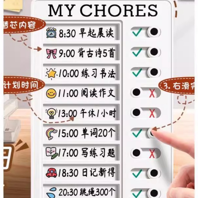 儿童自律打卡板学生自律神器学习打卡表作息规划好习惯养成任务时间打卡板儿童管理器学习读书暑假计划表暑期