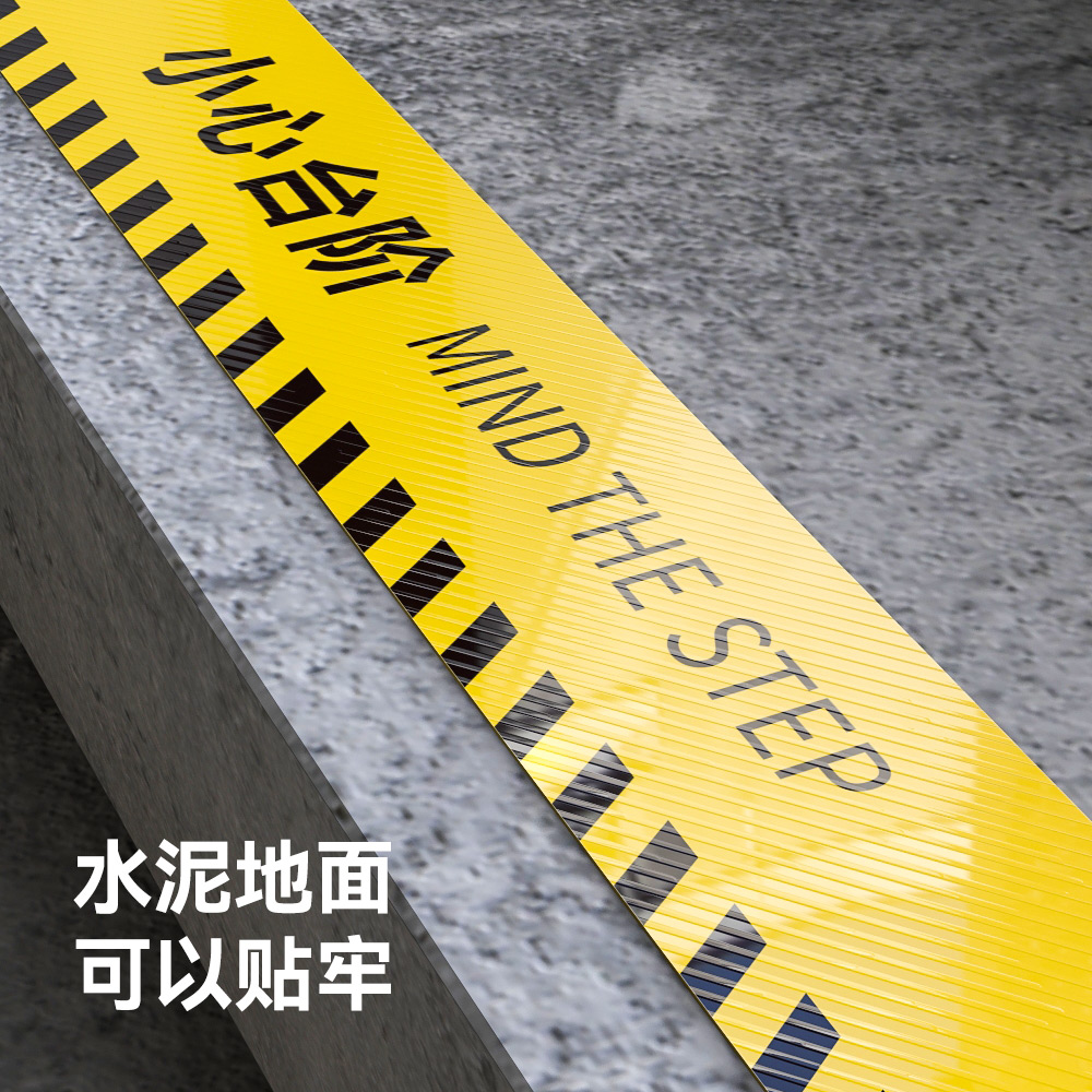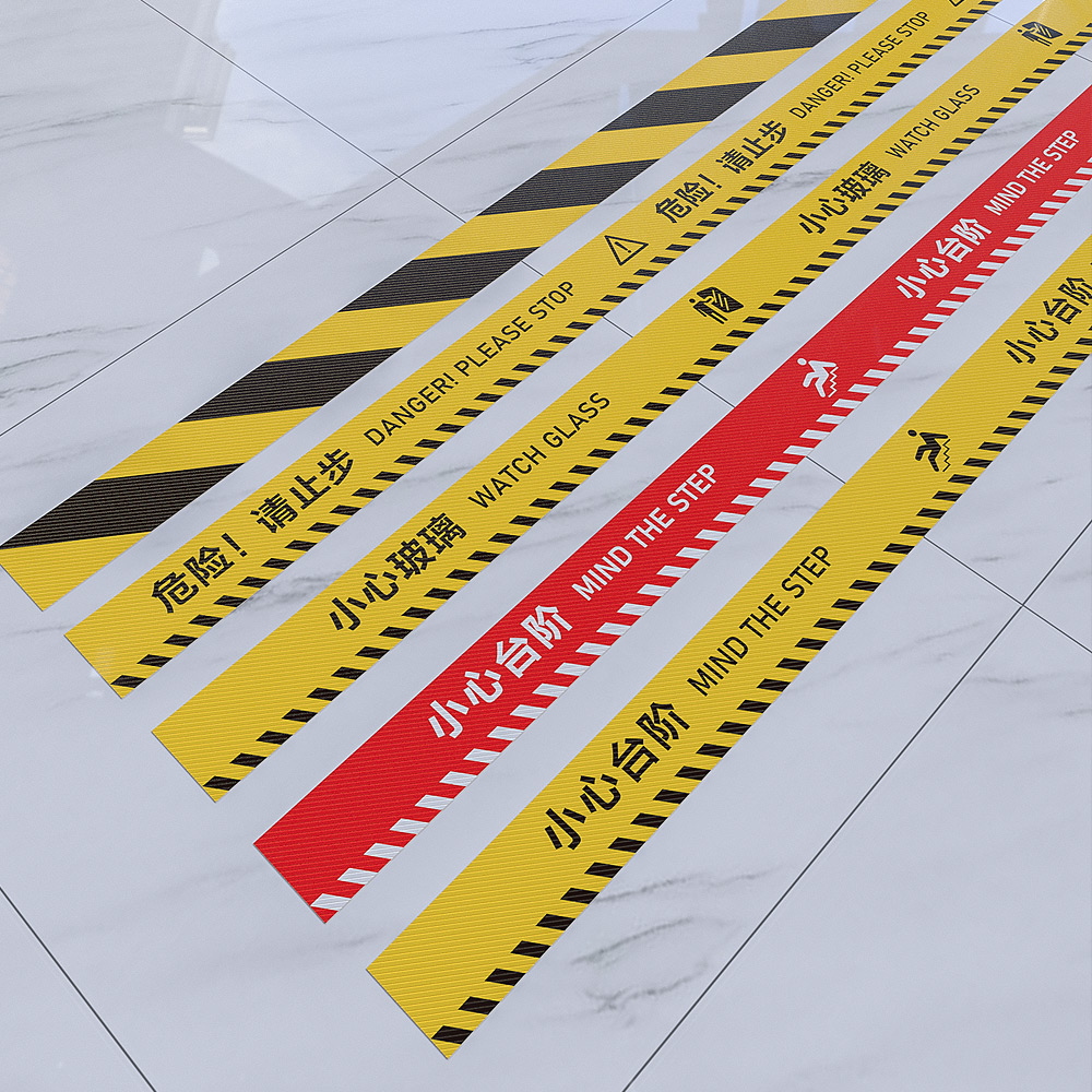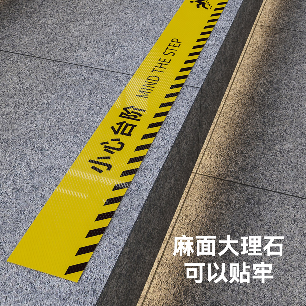 小心台阶地贴小心地滑当心脚下顾客止步玻璃加强版高粘性地贴墙贴注意安全细条黄色红色危险止步提示标识定制