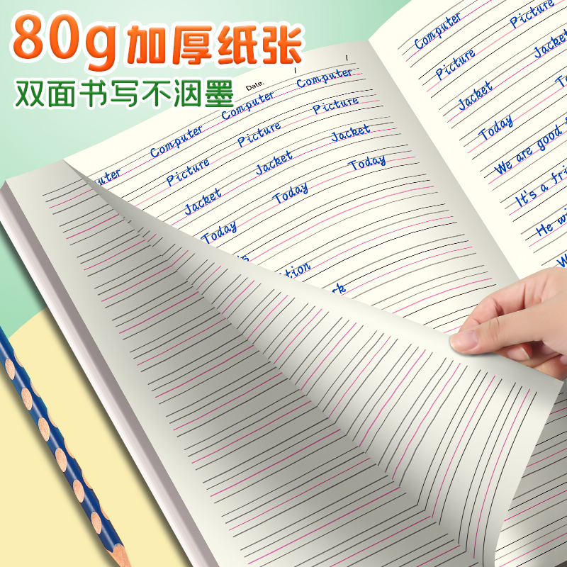 英语本小学生专用英语练习本加厚16k英语笔记本初中生三年级四年级五年级作文本子高颜值英语作业本四线三格