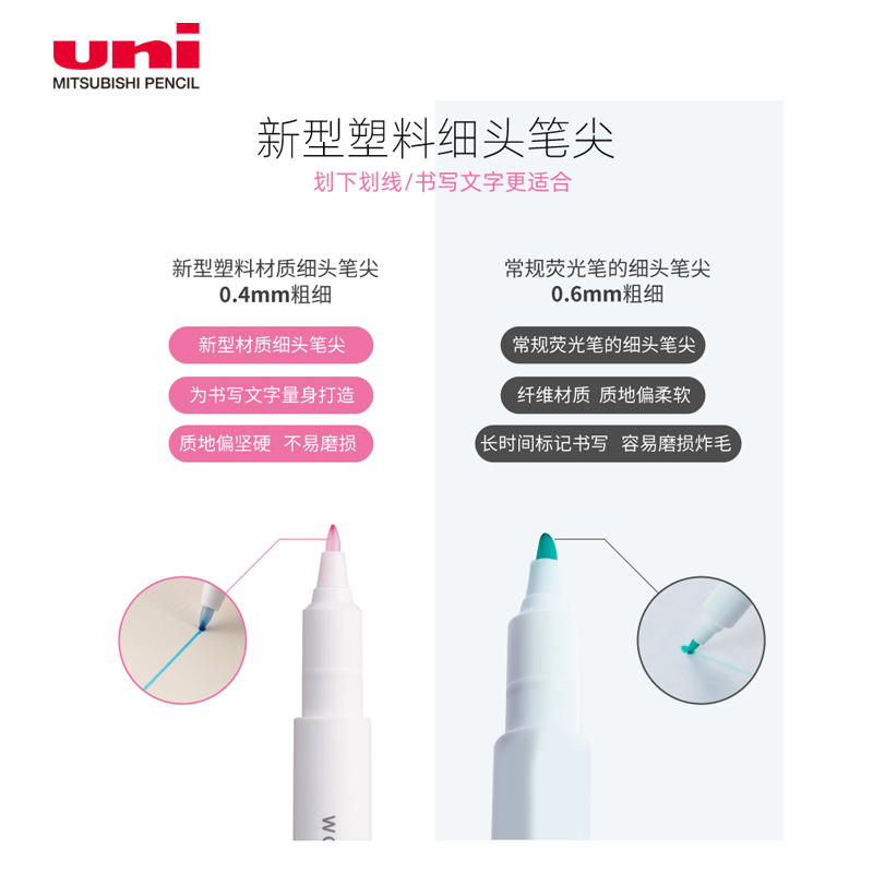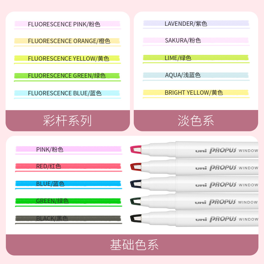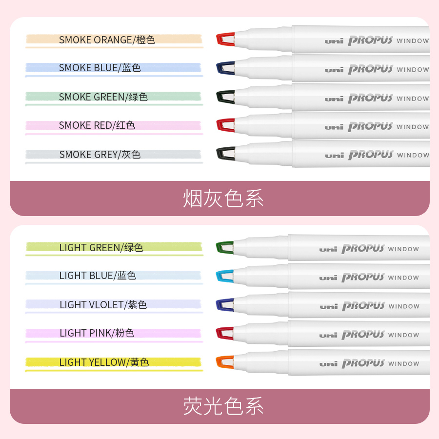 日本三菱淡色系双头荧光笔可视窗UNI PROPUS学生荧光标记笔学生用一套划重点标记笔烟灰彩色记号笔进口套装