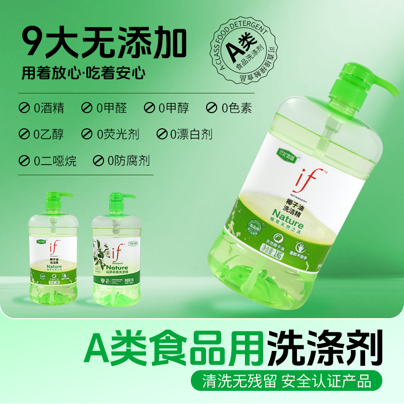 if天然椰子油洗洁精1kg×1瓶去油除味果蔬放心洗温和去污家用洗涤