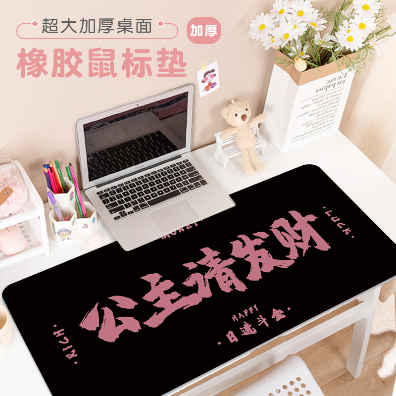 发财趣味文字鼠标垫公主搞钱超大号办公工位电脑学习键盘护腕桌垫