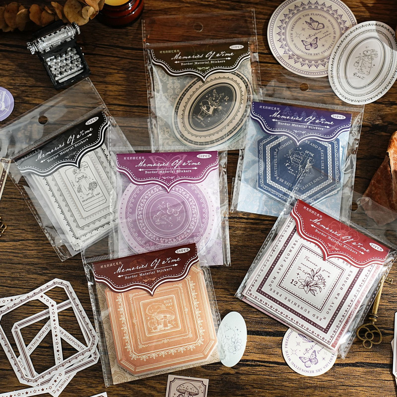 意鸟贴纸包 时光的回忆系列 复古异型边框手帐装饰素材贴20张 6款