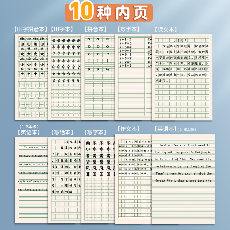 深圳市小学生作业本拼音田字格本数学英语写字写话课文作文练习本