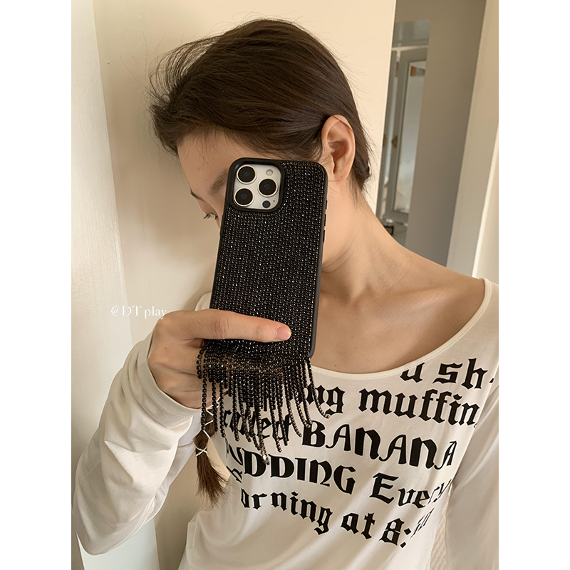DT play 闪闪黑色流苏俏皮可爱特别韩国ins风小众博主高级适用于iphone17/16promax/15/14苹果13手机壳保护套
