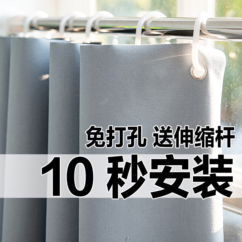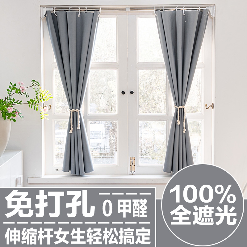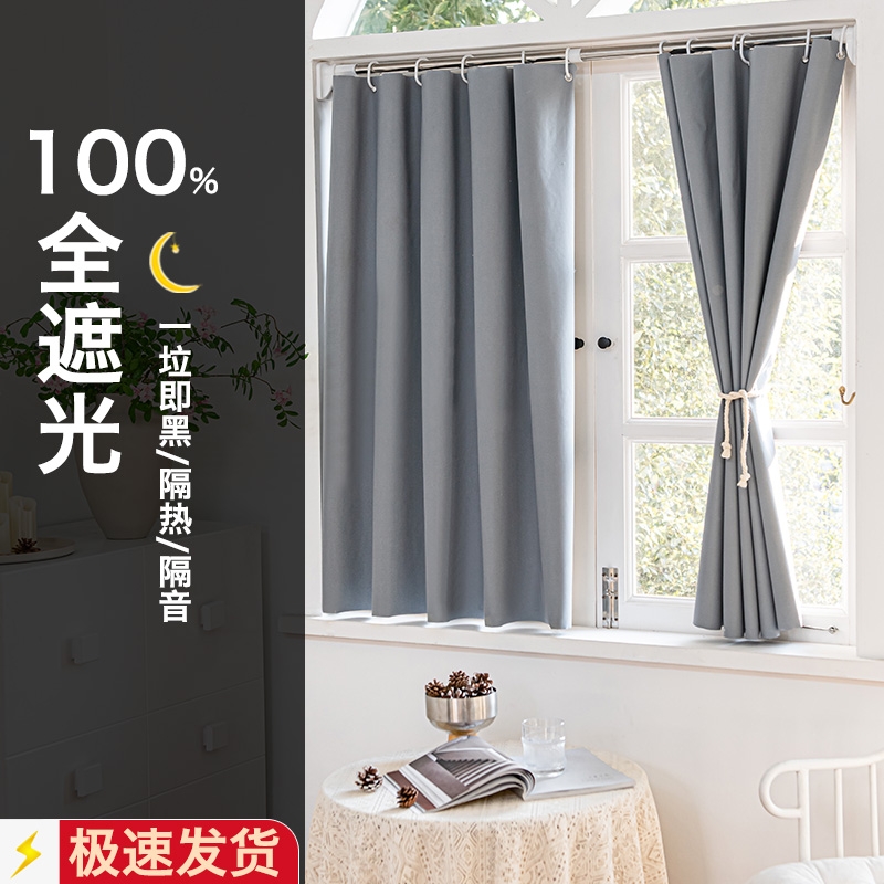免打孔伸缩杆100%遮光小窗帘2024新款卧室遮挡布安装隔音隔热保温