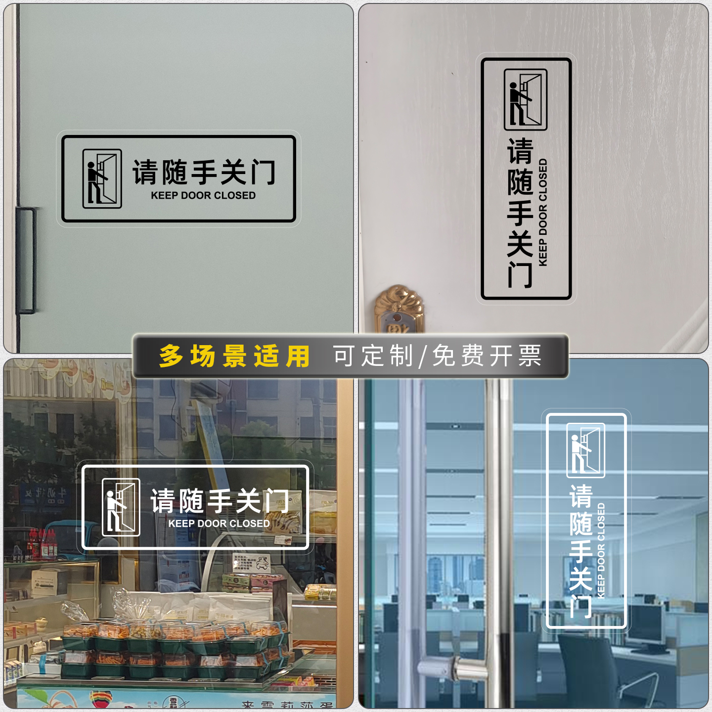 请随手关门提示牌办公室店铺推拉门标示贴超透玻璃贴纸透明指示牌