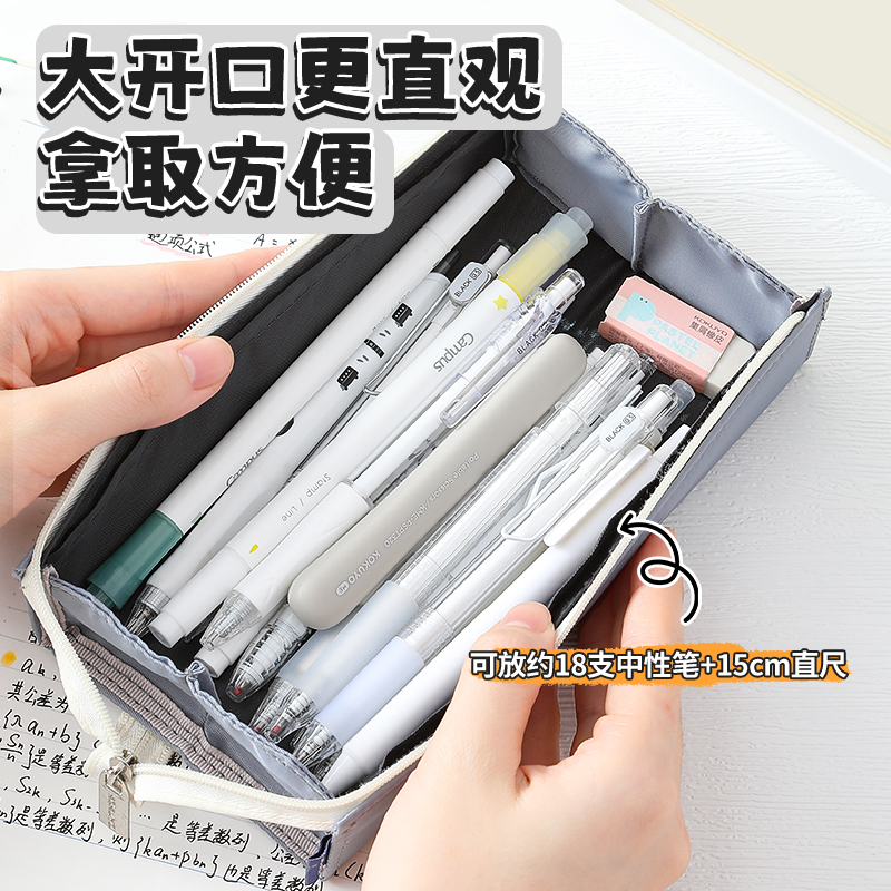 日本KOKUYO国誉笔袋女简约日系式男方形帆布小学生初中生大学生小众铅笔盒大容量文具袋高中生文具盒木野梦境