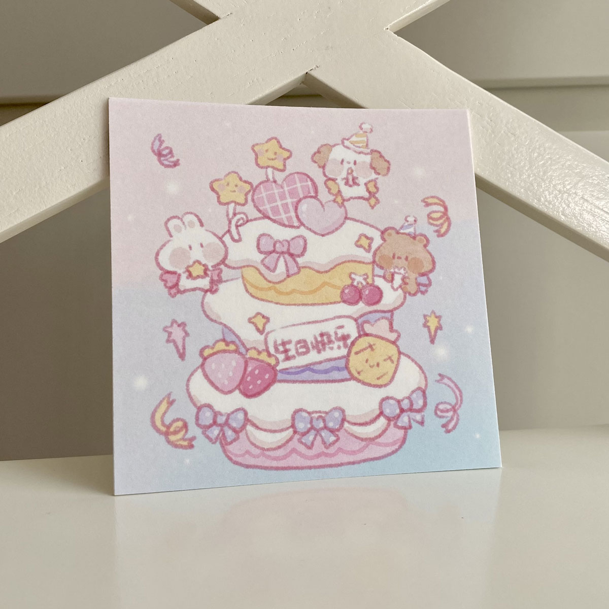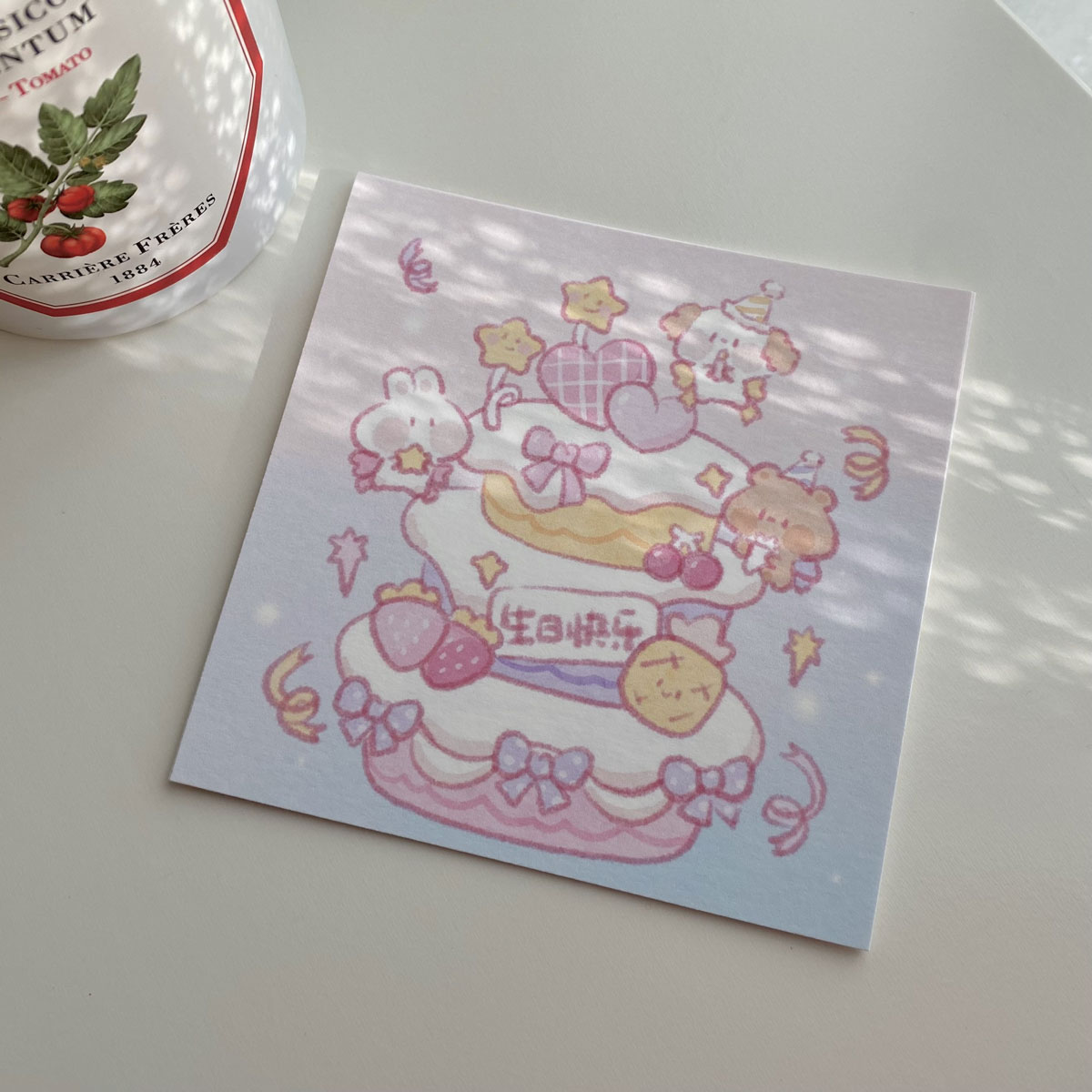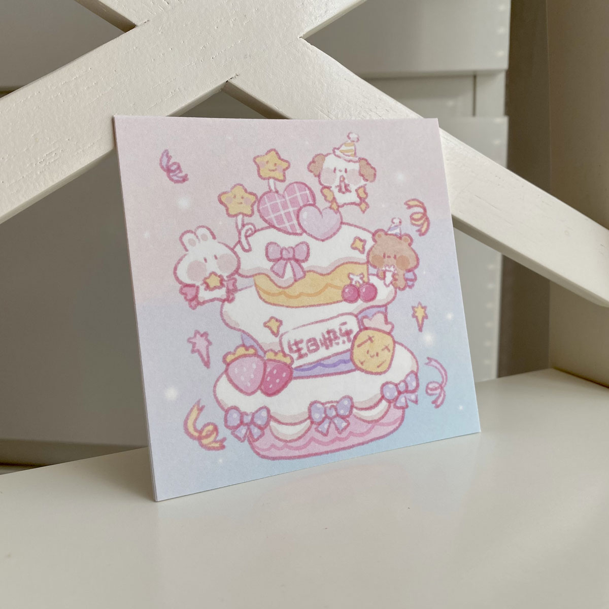 原创插画兔豆尼生日快乐系列贺卡/明信片/装饰卡片