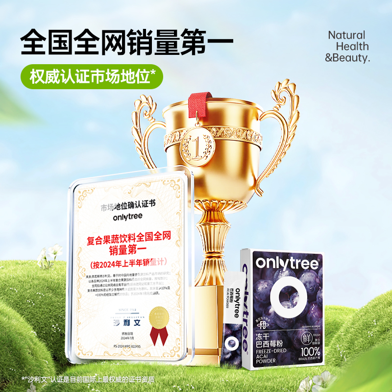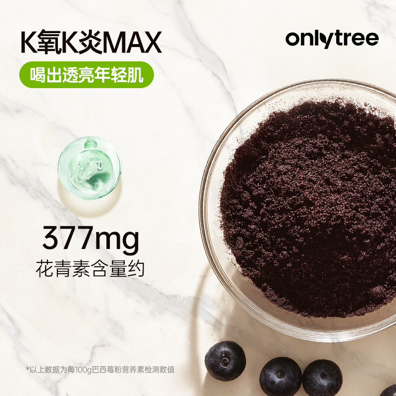 onlytree冻干纯巴西莓粉8盒80袋膳食纤维果蔬粉早餐代餐饮品冲泡