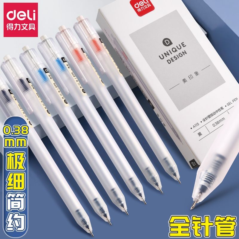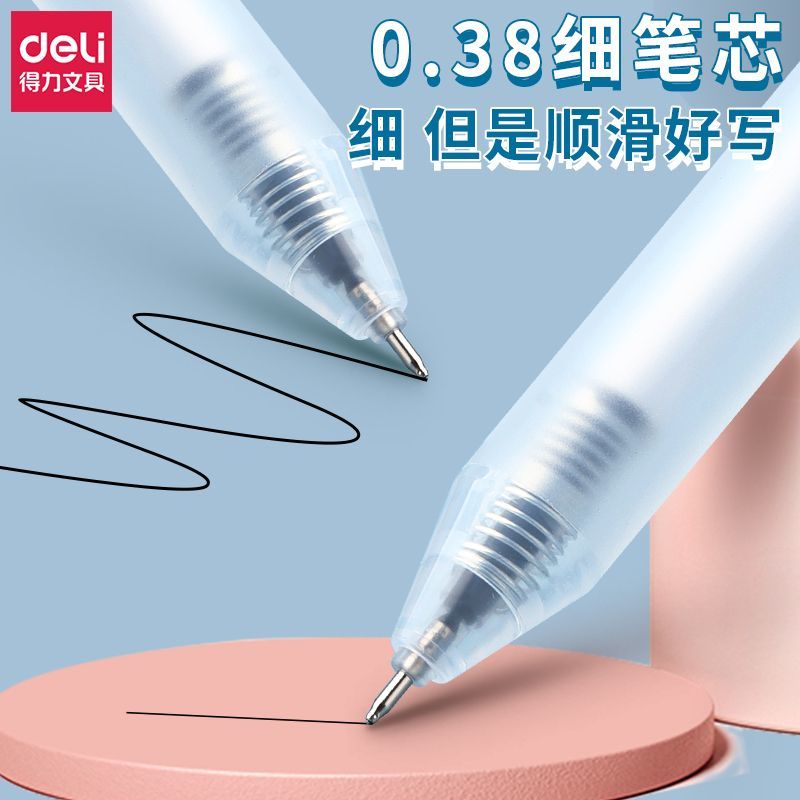 得力红色中性笔红笔按动式0.38细笔学生财会针管头按动签字笔简约细头黑笔改错极细顺滑直液式