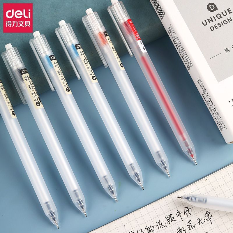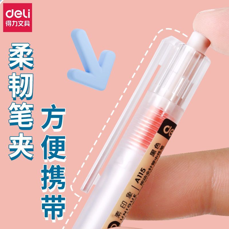 得力文具中性笔按动笔黑色0.5子弹头红笔学生用可定制笔广告笔企业展会礼品笔刻字商务圆珠笔s01升级超越k35