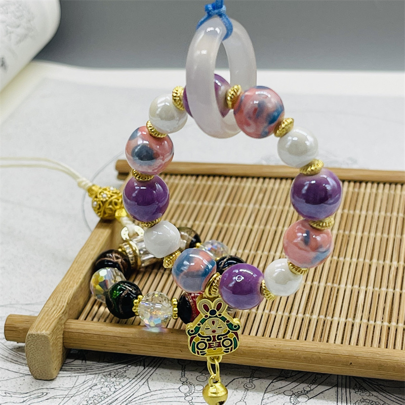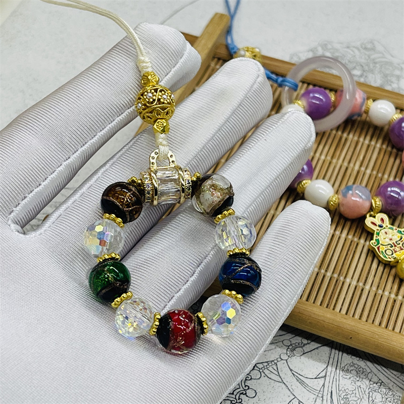 水晶香灰琉璃小五福手机链汽车钥匙链吊坠彩瓷兔爷u盘包包挂件女