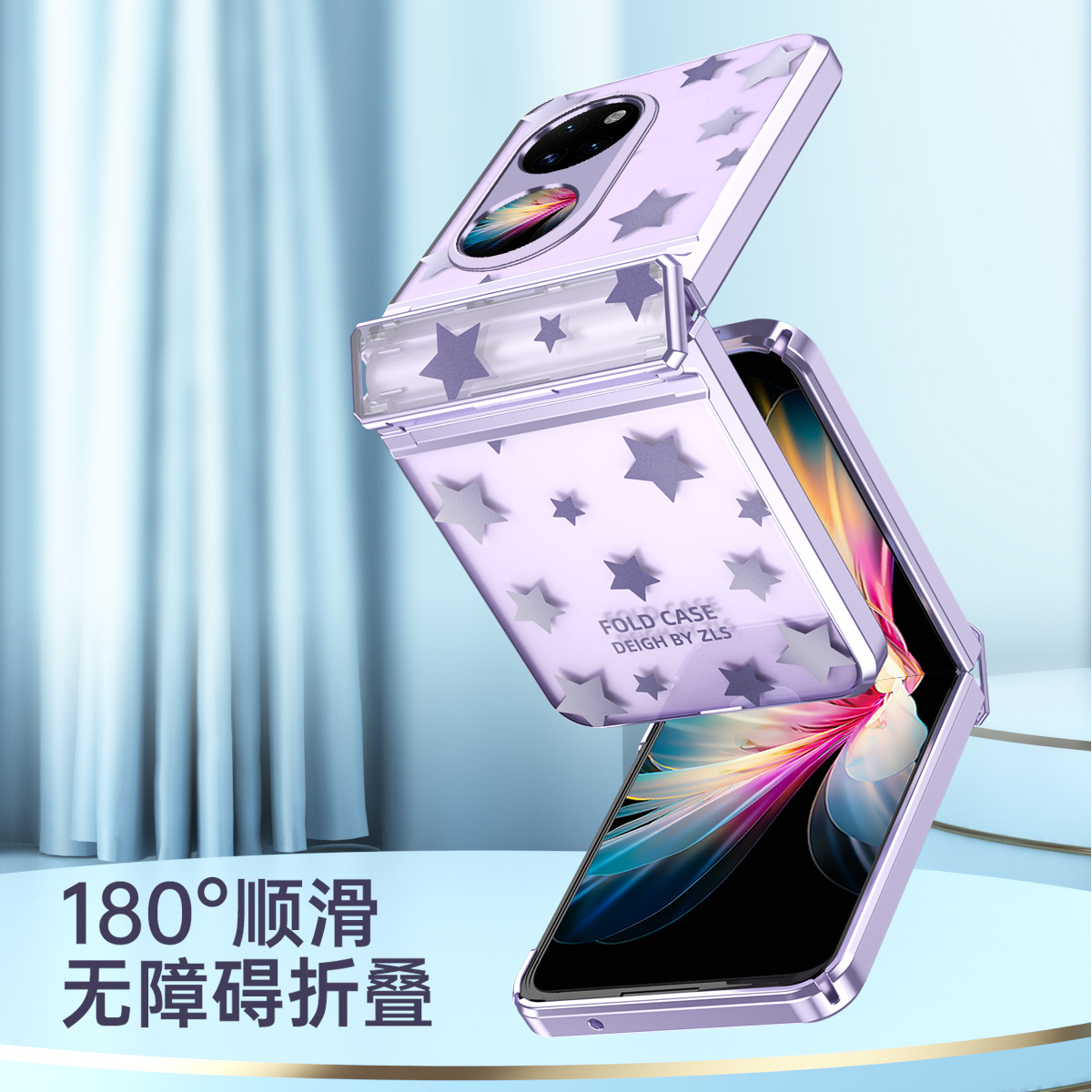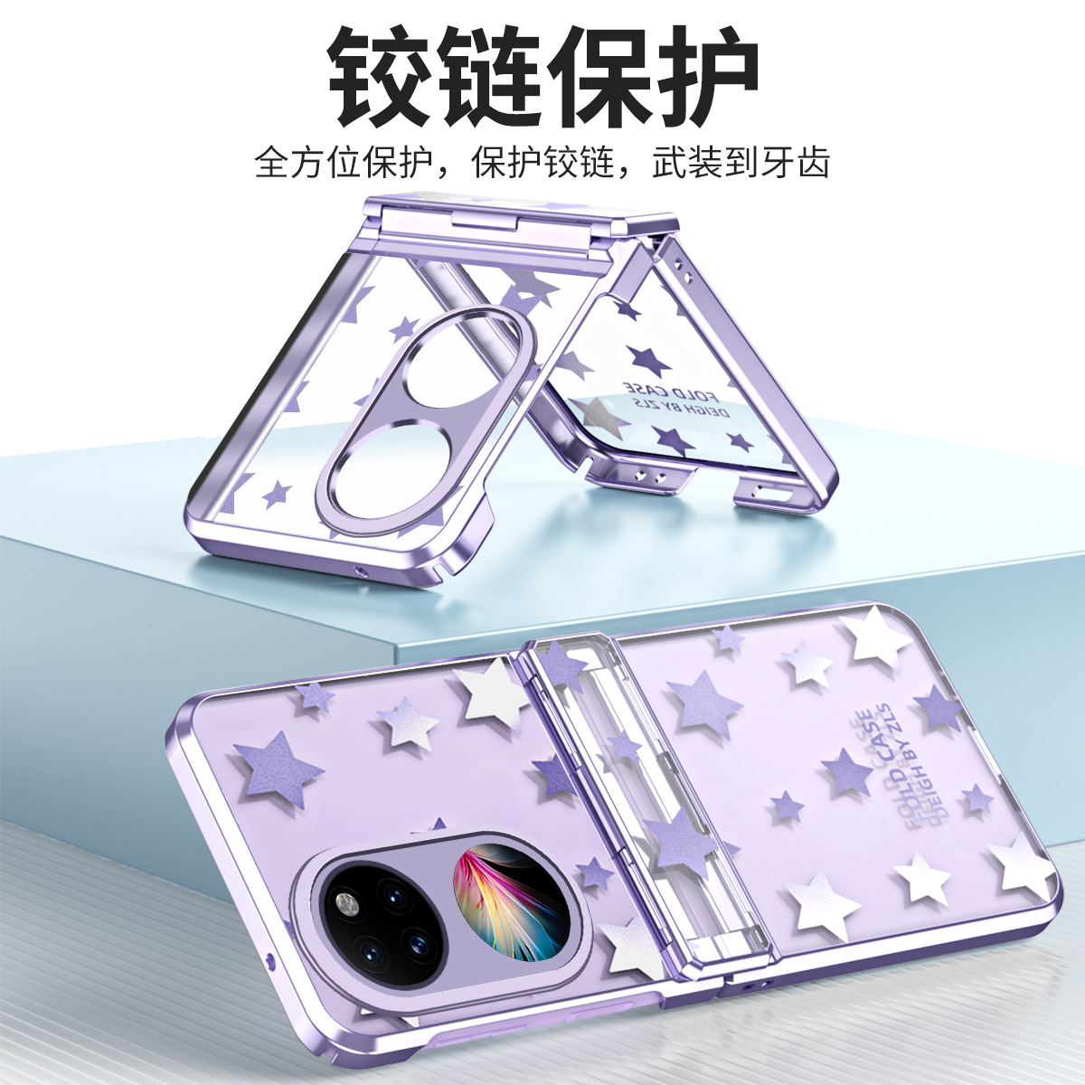 满天星网红适用于华为pocket2手机壳全包铰链pocket2保护套指环支架款轻奢超薄适用于p50Pocket皮套防摔时尚