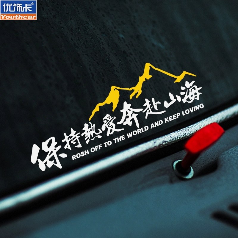 保持热爱奔赴个性车贴山海创意文字贴越野车电动车摩托车装饰贴纸