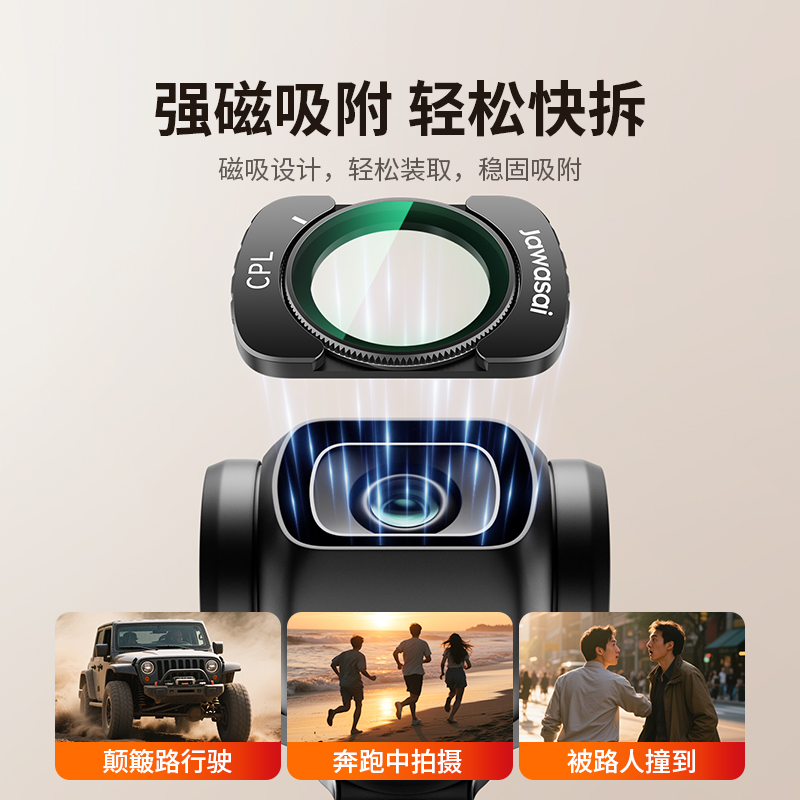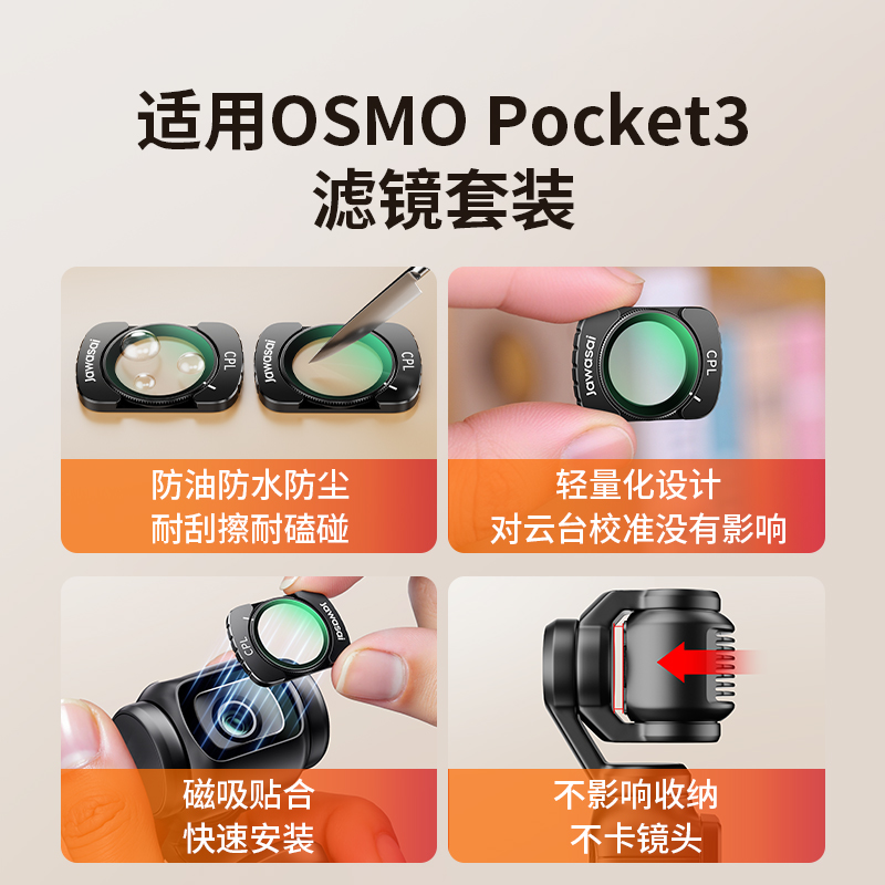 samtogo适用大疆pocket3磁吸滤镜套装黑柔ND广角镜头增广镜CPL偏振镜UV抗光害DJI相机摄影配件防丢绳底座拍摄
