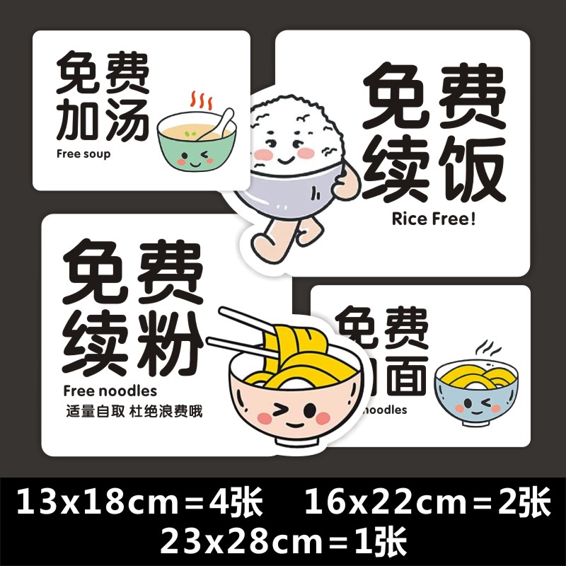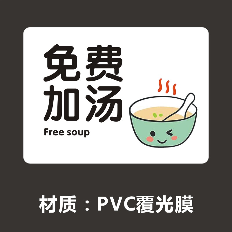 免费加饭提示每位加面续粉提示例汤自助加汤不收费PVC不干胶贴纸M