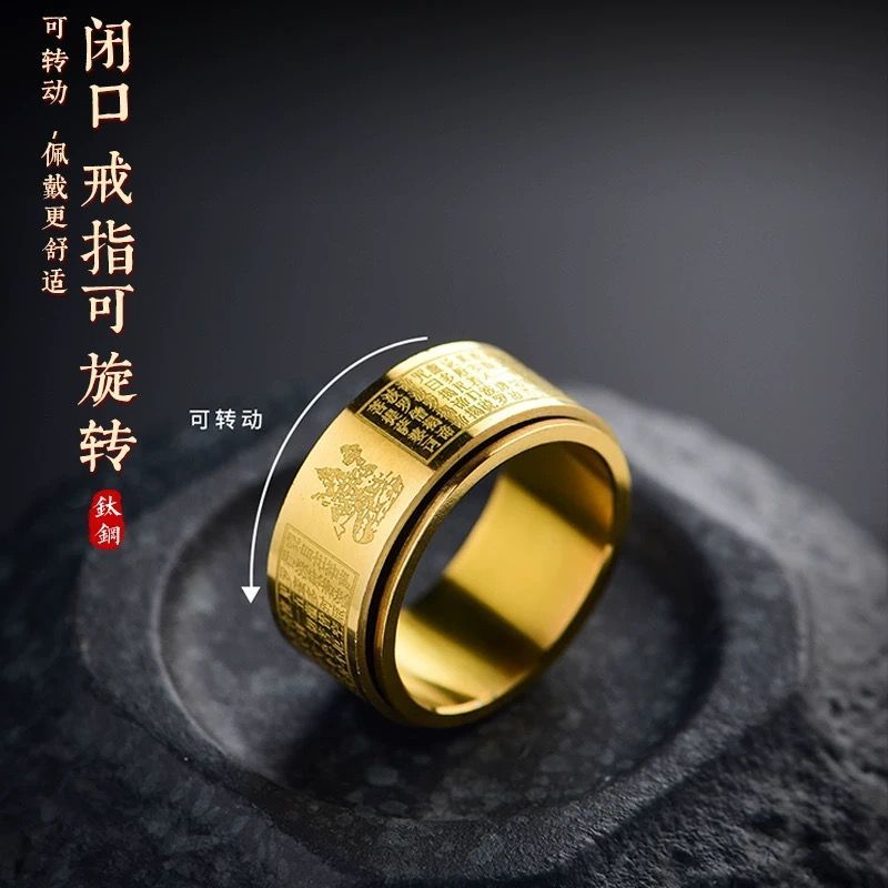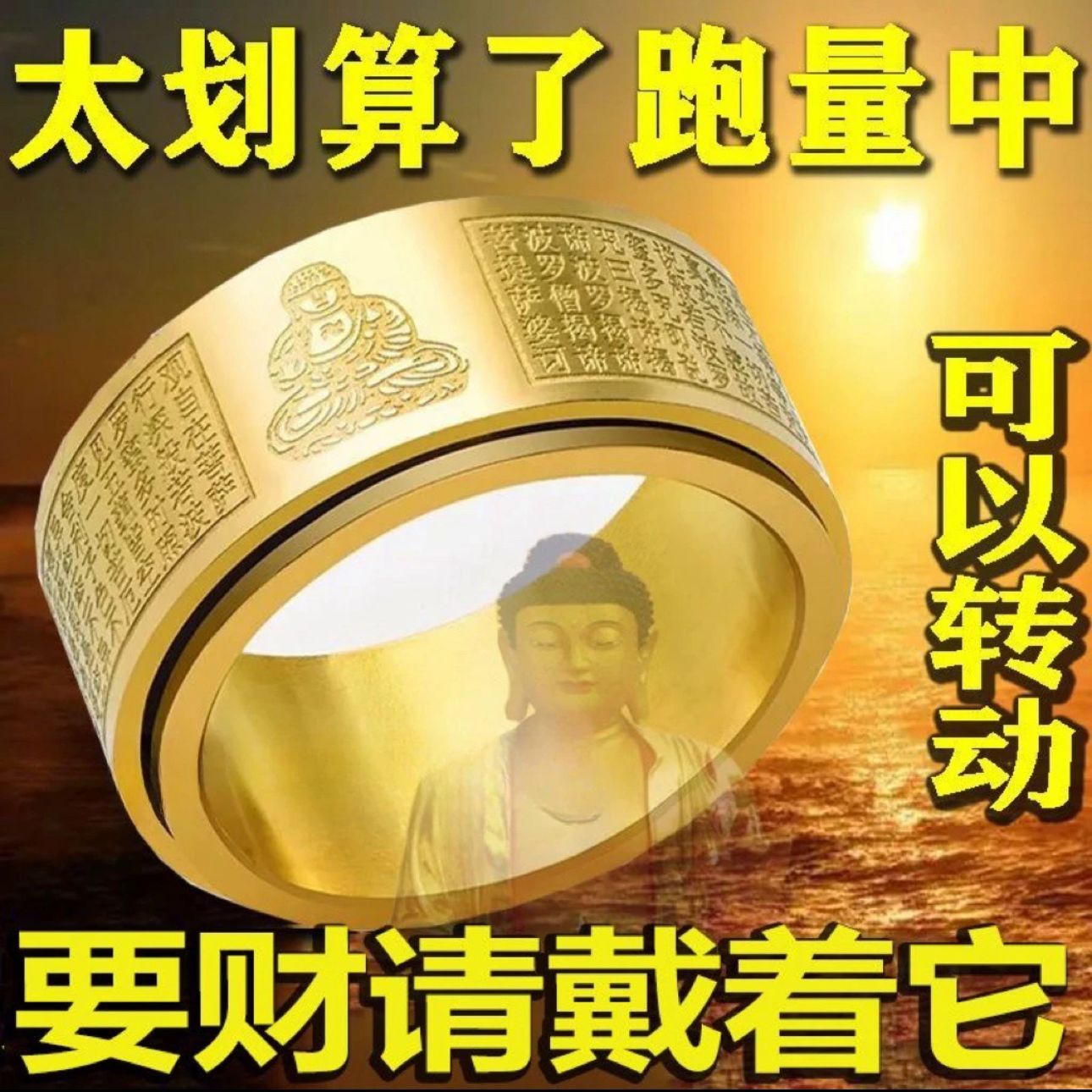 本命佛十二生肖守护心经转动钛钢戒指潮男解压可旋转指环招财转运
