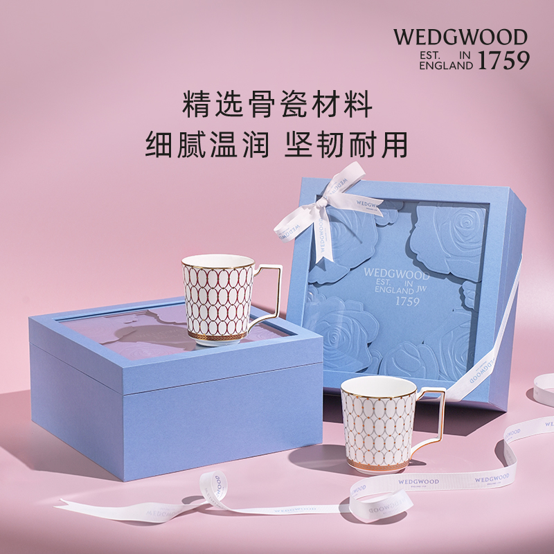WEDGWOOD威基伍德玫瑰礼盒马克对杯情侣杯水杯骨瓷杯子结婚礼