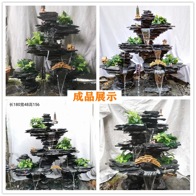 英德石假山鱼池造景流水喷泉真原石头盆景黑片石墨石景观石乌龟爬