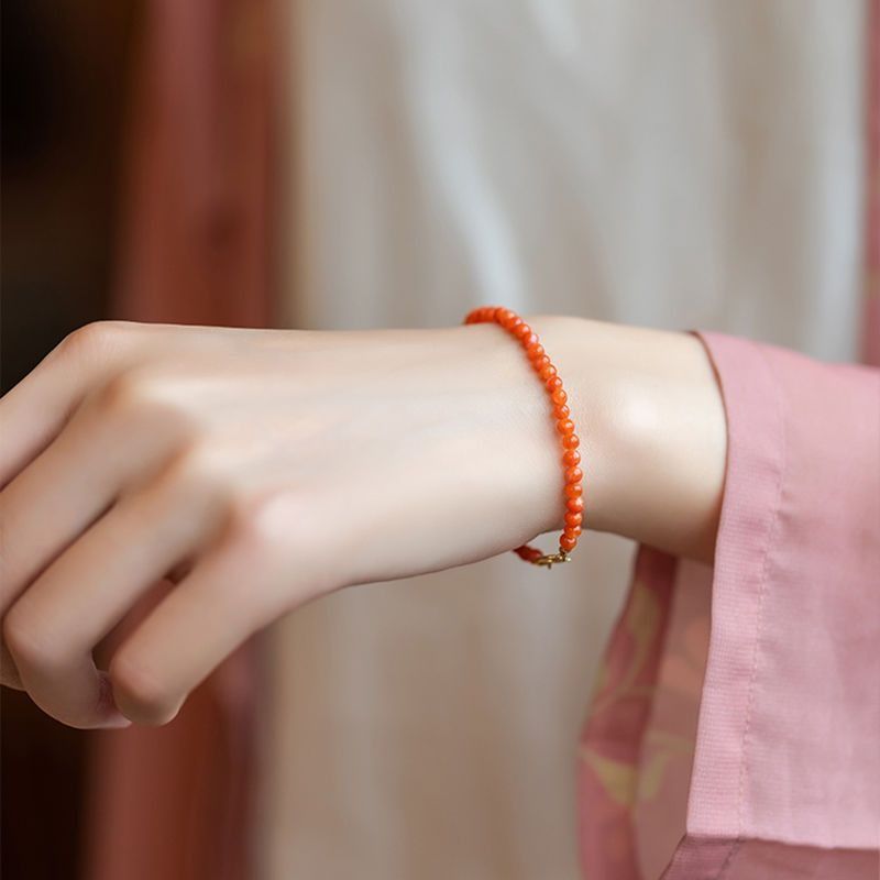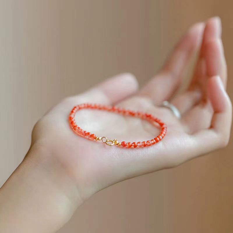 南红玛瑙手链种樱桃红柿子红男女款单圈手串时尚清约细款佩戴情绪