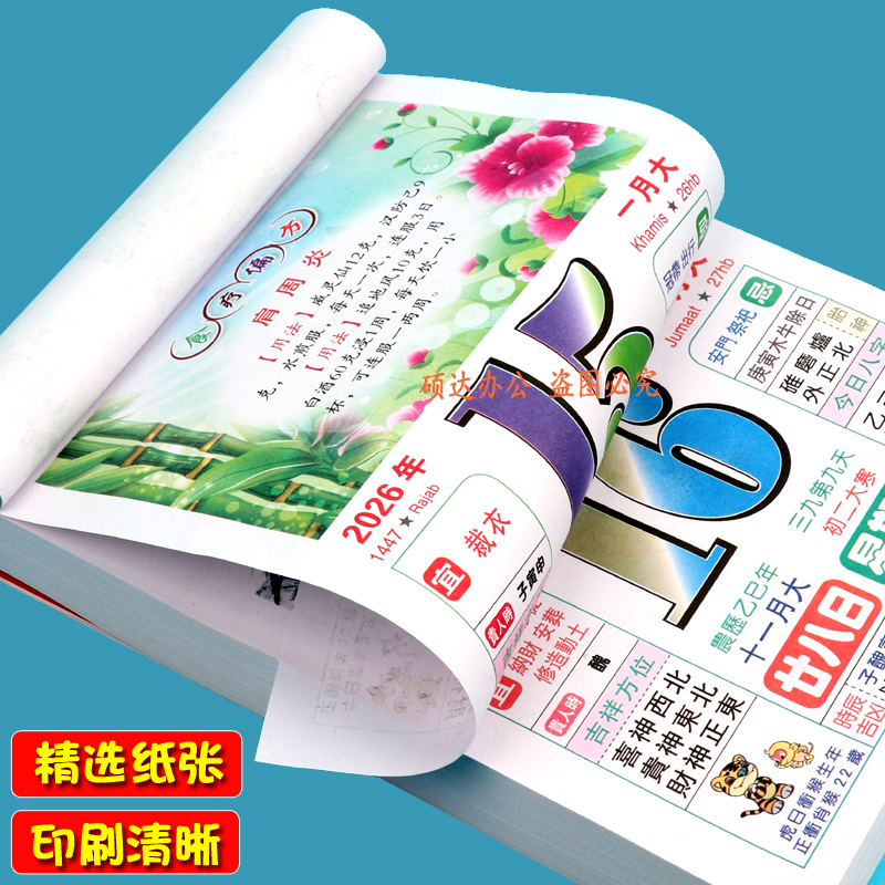 日历2026年新款彩色养生手撕老黄历挂墙式家用挂历大号知识皇历