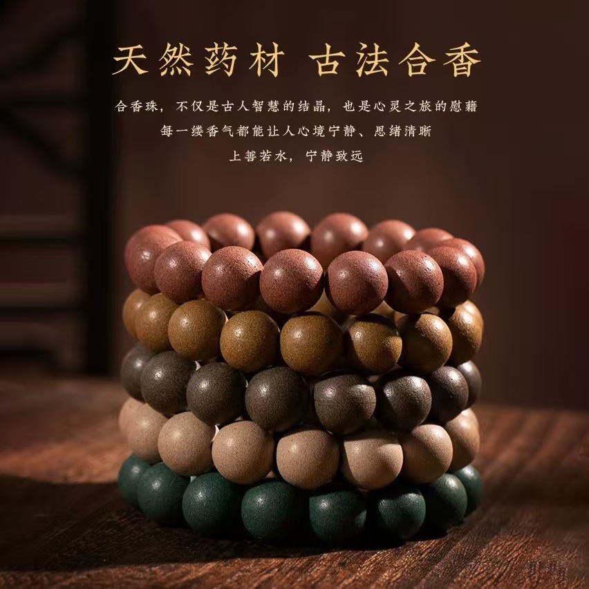 非遗古法中药合香珠手串五方情绪稳定香珠道家五行檀香手链安神
