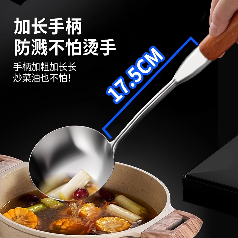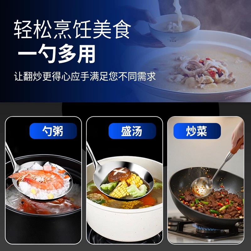汤勺304不锈钢家用大号盛汤防烫勺子加厚厨具长木柄粥勺炒勺加深