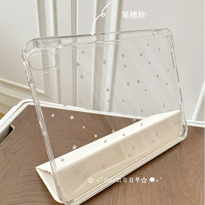 kiki原创/奶黄兔子乐园星星适用于ipad保护壳滑轨平板保护套亚克力高透硬壳防弯三折书本有笔槽air611寸mini6