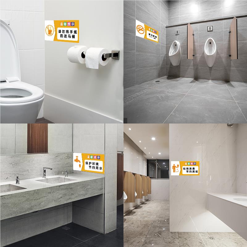 厕所标识牌便后冲水洗手间标语公共厕所及时冲厕废纸入篓贴纸卫生间节约用水随手关灯温馨提示墙贴定制定制ZH