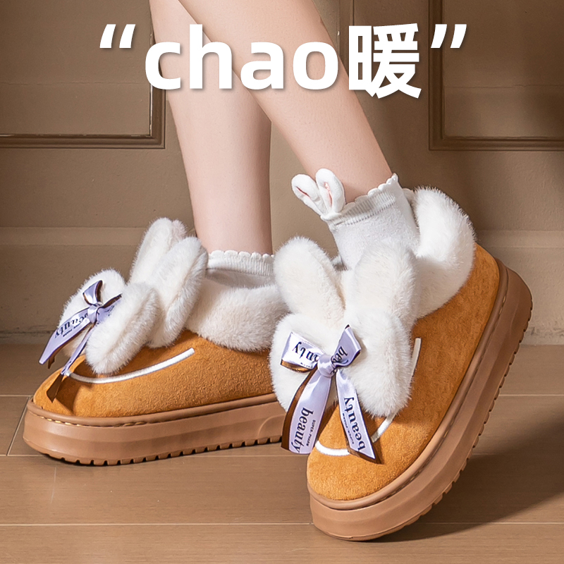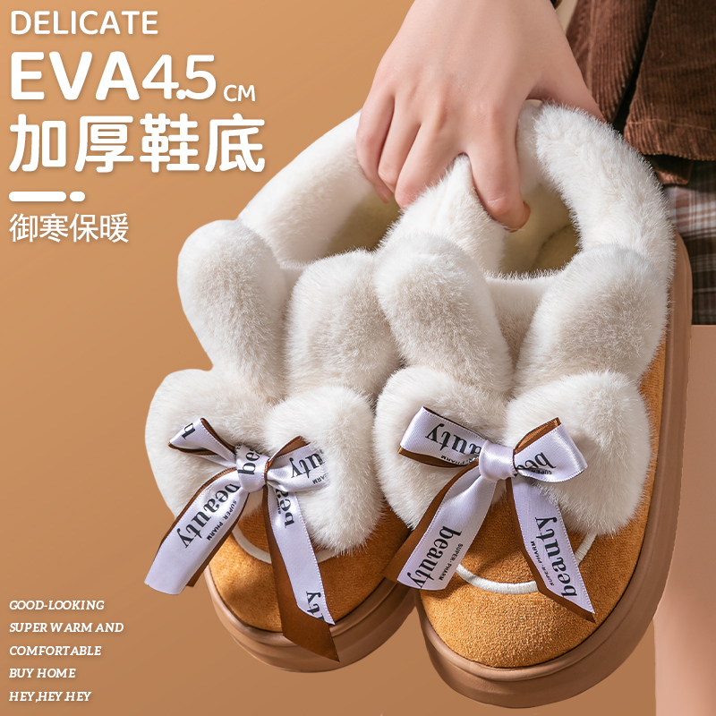 可爱防滑猫咪棉鞋女可外穿秋冬包跟猫猫脚印家居用厚底保暖棉拖鞋