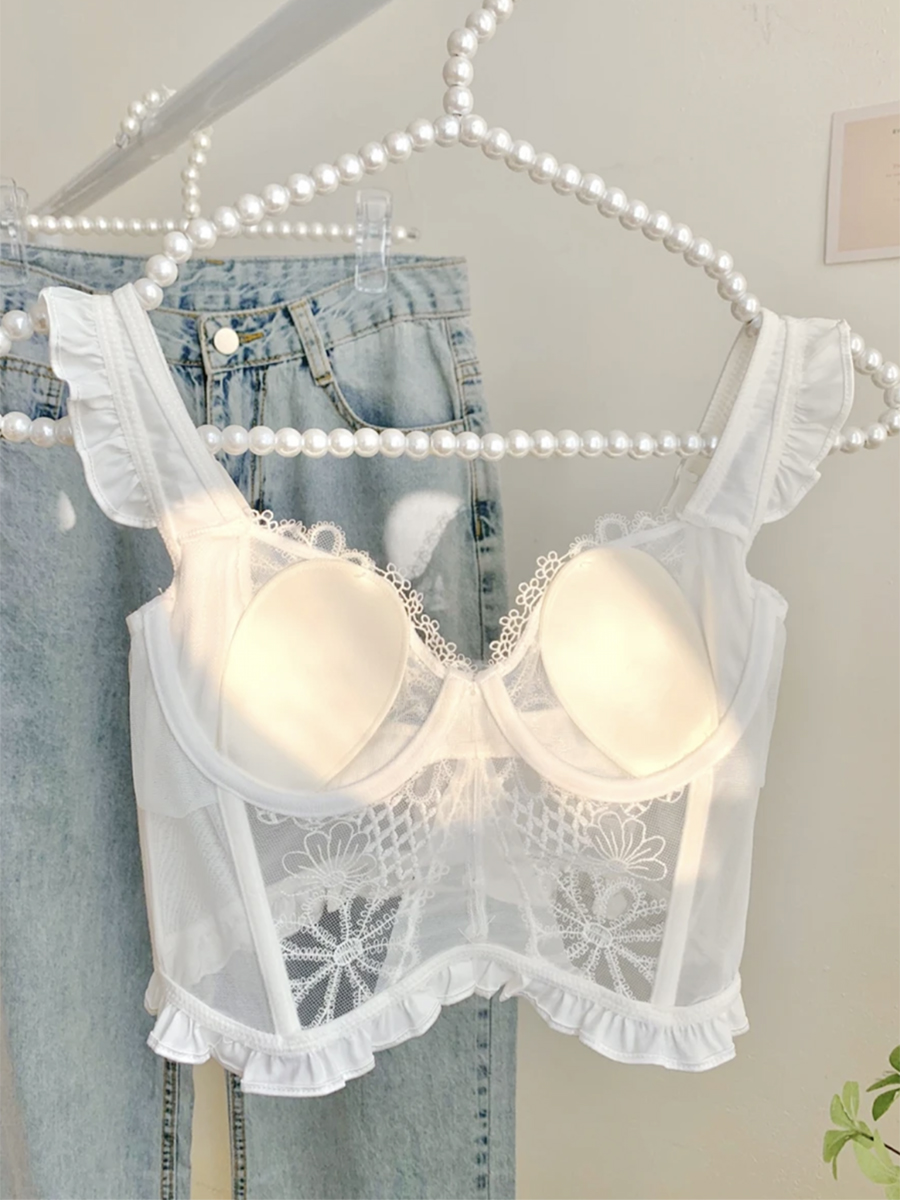 法式性感鱼骨蕾丝胸衣内衣女软钢圈大胸显小可外穿纯欲风文胸套装