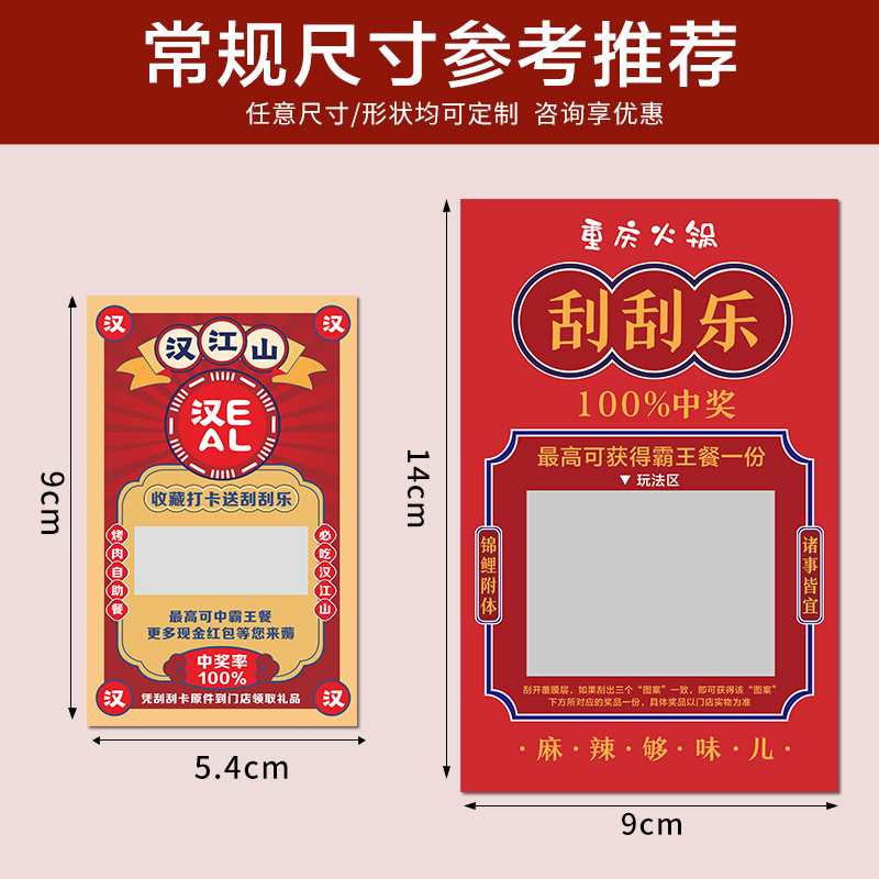 餐饮刮刮卡定制菜品氛围感火锅店奶茶抽奖刮刮乐图层活动卡订logo打印定做创意diy小卡片设计明信片小贺卡印