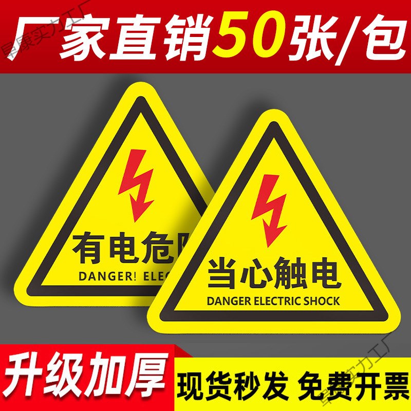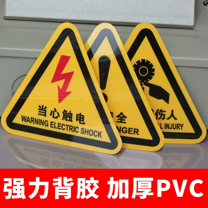 有电危险警示贴纸自粘当心小心触电配电箱指示牌标识牌三角贴提示