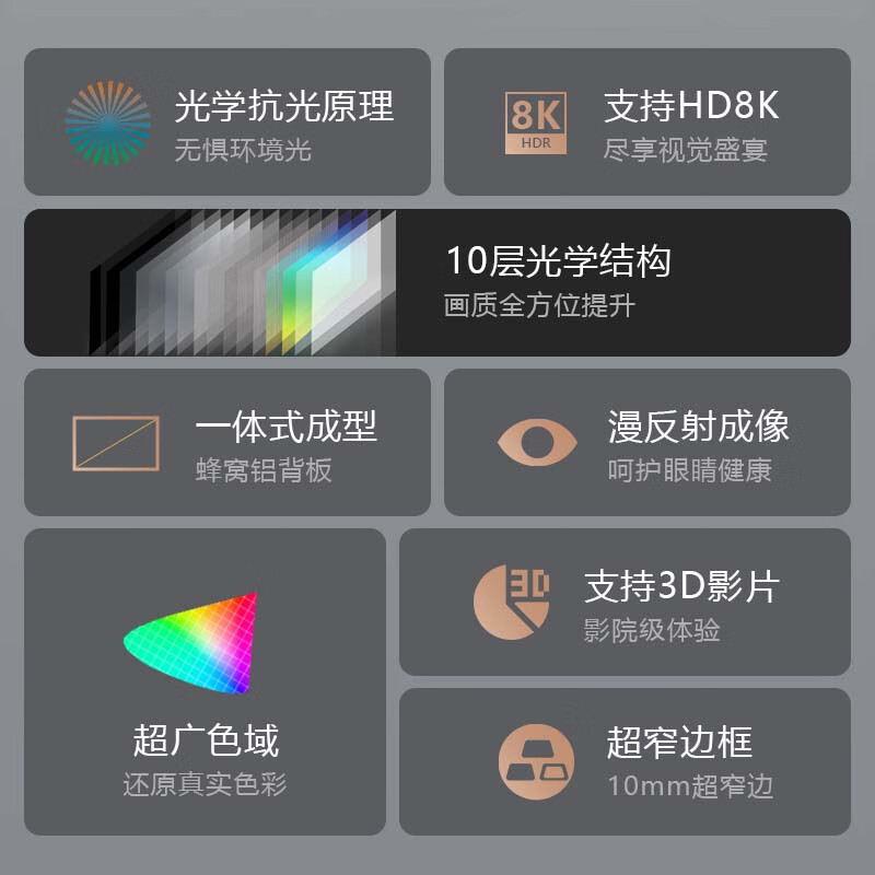 JINGMI鲸米菲涅尔抗光硬屏中长焦投影仪幕布窄边高清画框家用屏幕